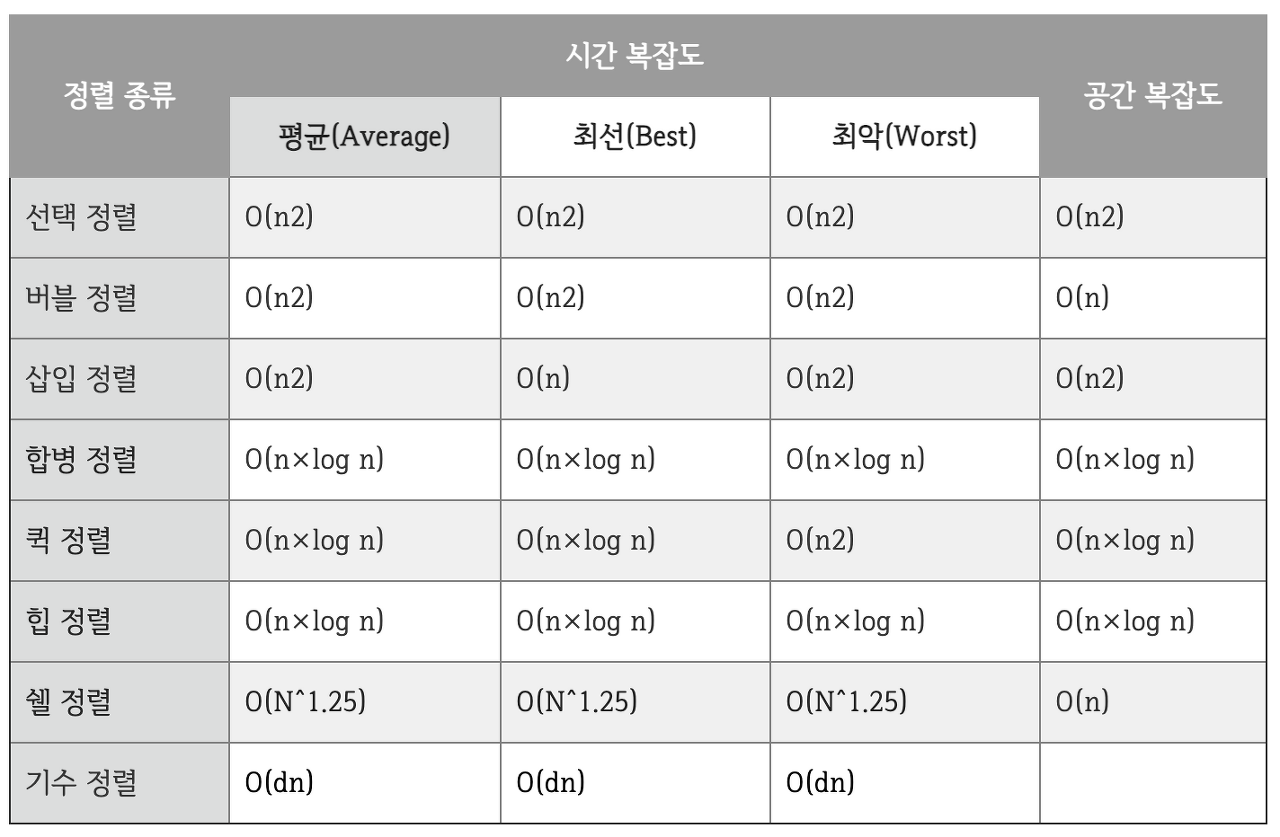 | N의 크기 | 시간복잡도 |