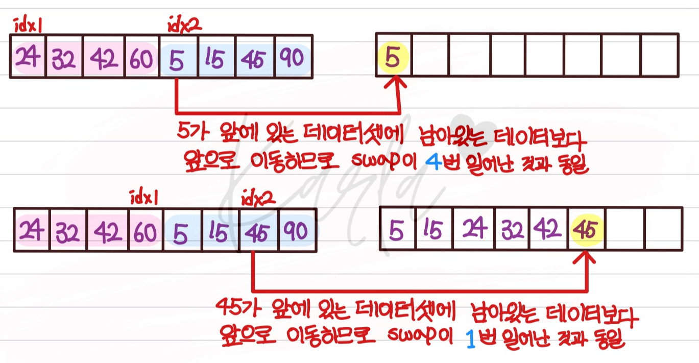 N(1 ≤ N ≤ 500,000)이므로 nlogn 병합정렬로 풀이