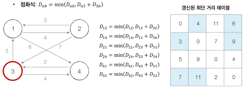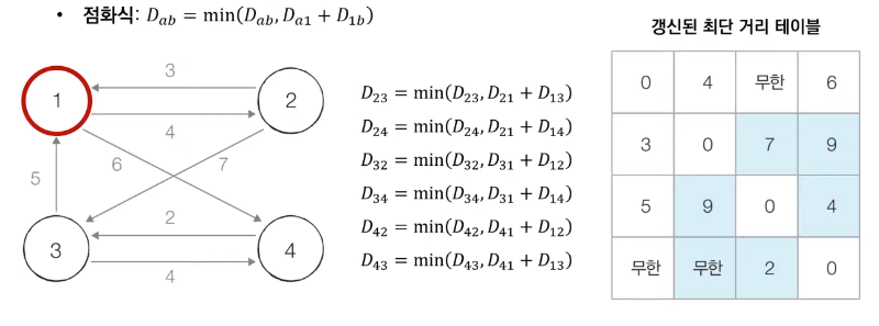 점화식 d[s][e] = Math.min(d[s][e], d[s][k]+d[k][e])