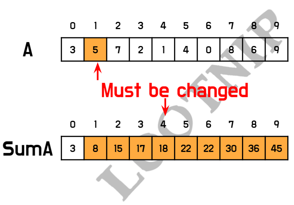 - arr[1]를 update 한다면 ? sum[1]부터 sum[9]까지 모든 값을 update 해야함 ➔ 느림