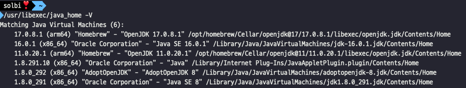 설치된 모든 jdk 버전들 확인