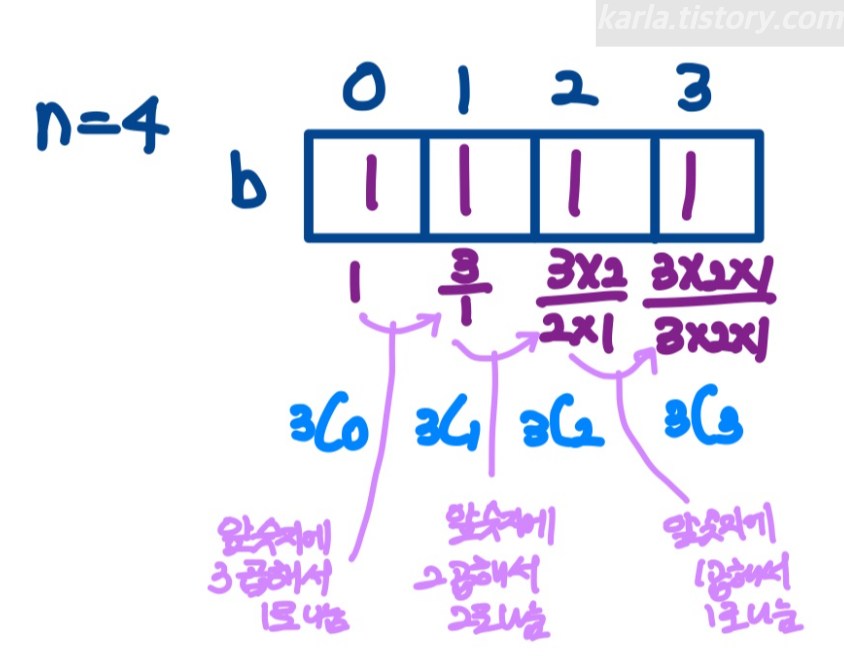 가장 윗줄에 1부터 N까지의 숫자, 둘째 줄부터 위의 두개를 더한 값이 저장